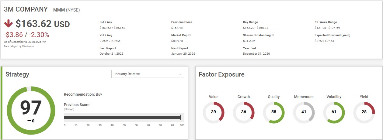 3M has a Quality score of 58 and a volatility score of 61, indicating its stability and strong ranking compared to its sector and the overall market. CPMS helps determine the most suitable strategy for a stock, and Colgate’s strong scores in Quality and strength in Earnings stability make it an ideal fit for the Industry Relative strategy.