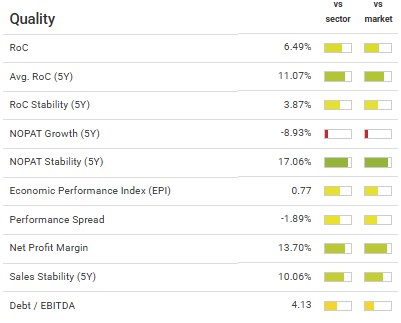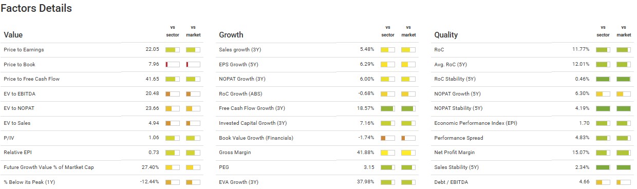 Lastly, comparing the current key stats with its historic values informs us about the higher reinvestment rate, return on assets, return on equity along with an improvement in its debt-to-EBITDA from 1.6x to 0.9x. These insights from the CPMS engine reveal the company’s resilience and strength, not just at the factor level, but also across key individual metrics giving an opportunity to investors seeking quality investments at cheaper valuations.