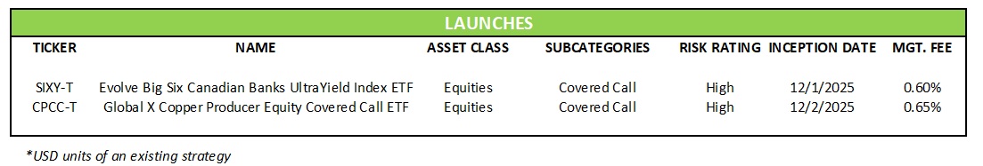 While most issuers made their final distribution announcements for 2025, December was a quiet month for ETF launches with only two new funds.