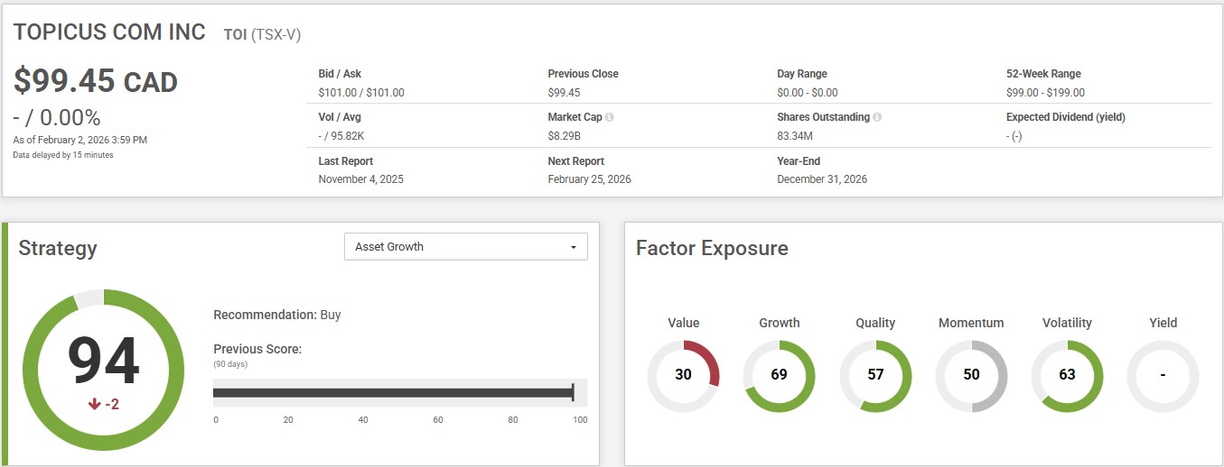 Topicus stands out in Growth with a score of 69. Therefore, it has a great score in CPMS’s Canadian Asset Growth Strategy. It is suited for investors seeking high growth rates through stocks with high reinvestment rates. The strategy emphasizes stocks with high trailing and expected reinvestment rates, with high earnings estimate revisions, quarterly sales momentum and earnings surprise.
